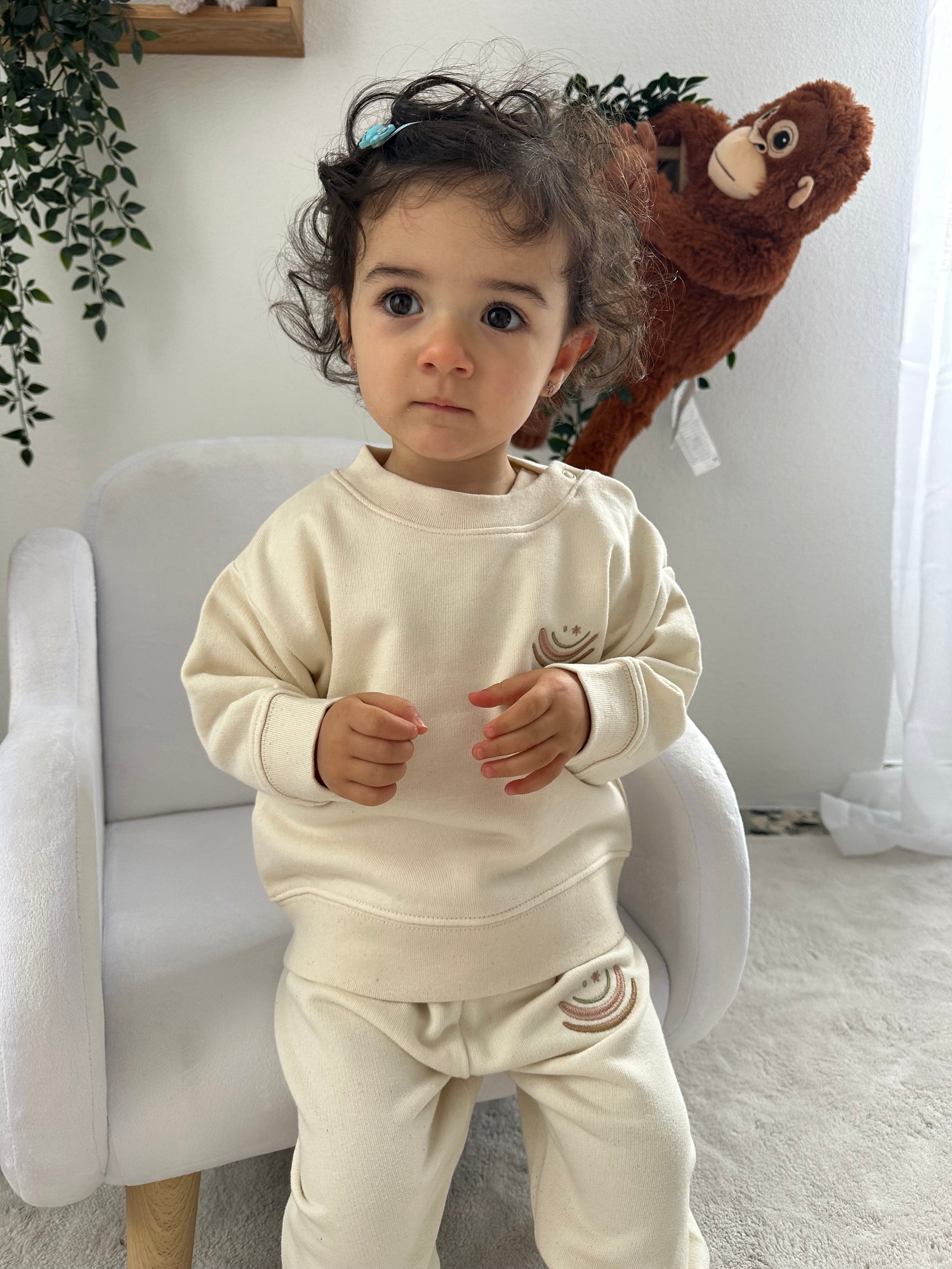 Realizzata in Cotone Biologico Certificato garzato, coltivato senza pesticidi né sostanze chimiche, per garantire un capo sicuro, traspirante e delicato sulla pelle. Perfetta per le giornate più fresche, unisce comfort e rispetto per l'ambiente.